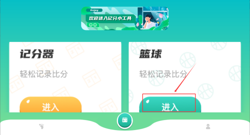 2、在软件首页找到“篮球计分”功能模块,点击即可进入计分操作页面。