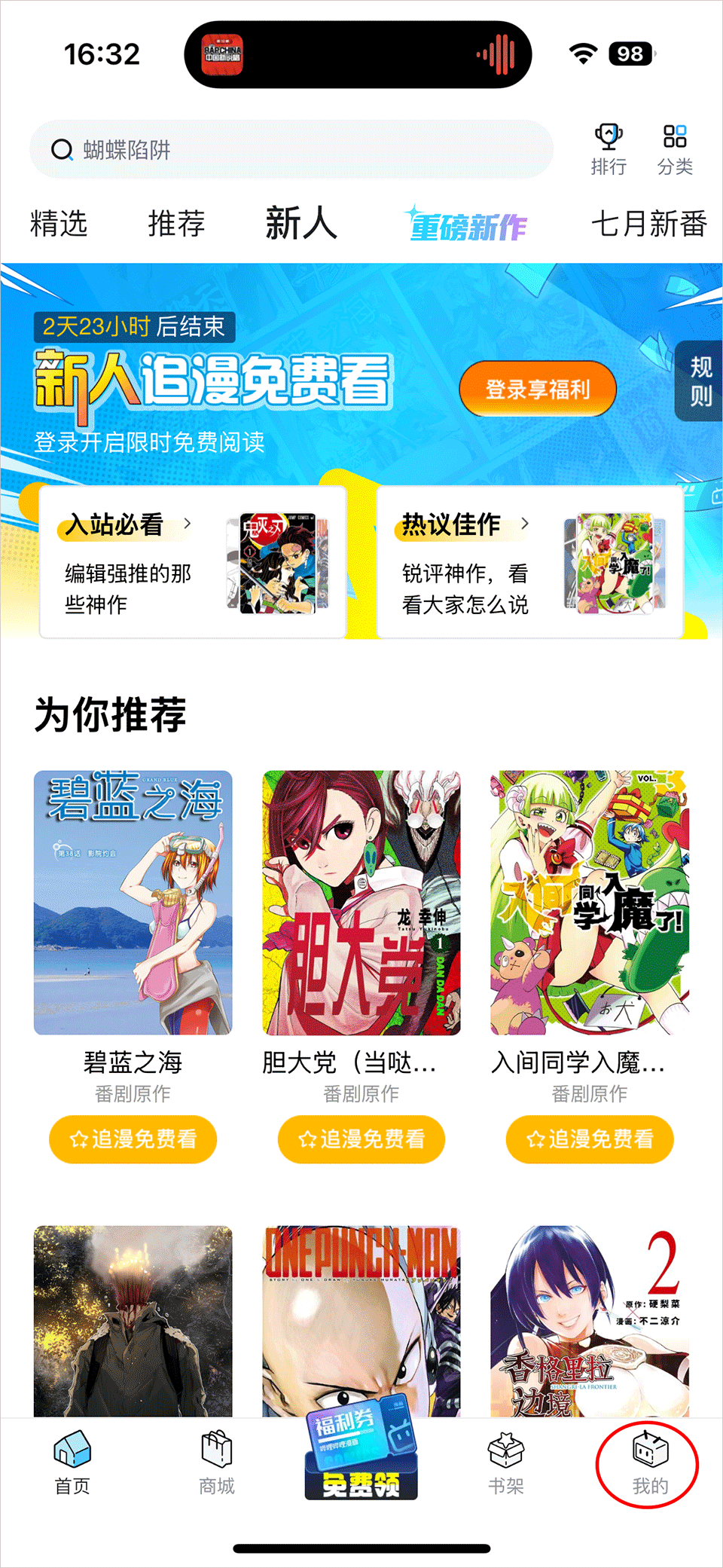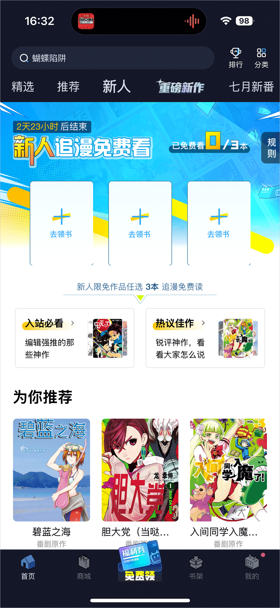领取多重福利有机会免费看漫画噢~