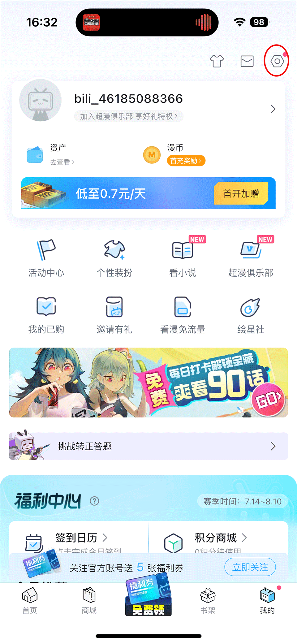 哔哩哔哩漫画app怎么开启深色模式?