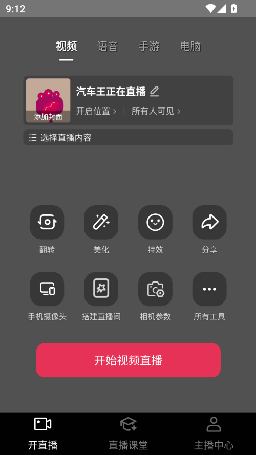 5、最后选择好相应的直播内容与直播主题,就可以开始直播了。
