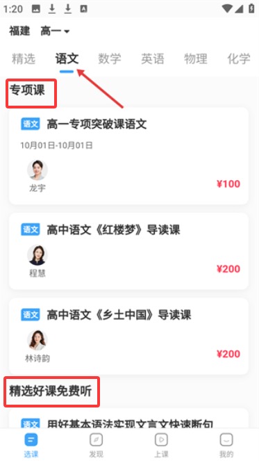 4、语文专区包含经典导读与专项突破课程,部分优质内容支持免费试听体验。