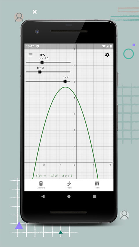GEOGEBRA图形计算器是一款学习教育app,在这里可以了解更多数学的公式,让每个用户都能够了解更多数据的分析结果,还可以自定义函数的表达式,从而绘制出更加复杂的函数图形,生成的数学函数图形非常清晰,能够更加轻松地输入数学表达式,提供直观的图形界面,以图形方式展示函数的变化趋势,有需要的用户,快来下载吧!