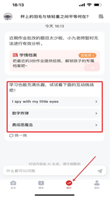 2、提升板块设有数字挑战等互动游戏,包含古诗文背诵等专项训练学习模块。