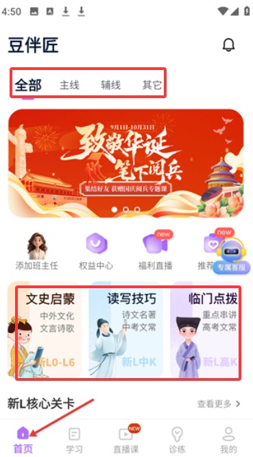 豆伴匠伴学系统,文史内容包括:人、文、史、作四个模块,全面覆盖文史知识及读写技巧。通过轻量、便捷的方式,可随时随地进行自学,读写练测一体化,在趣味学习中完成通关任务。