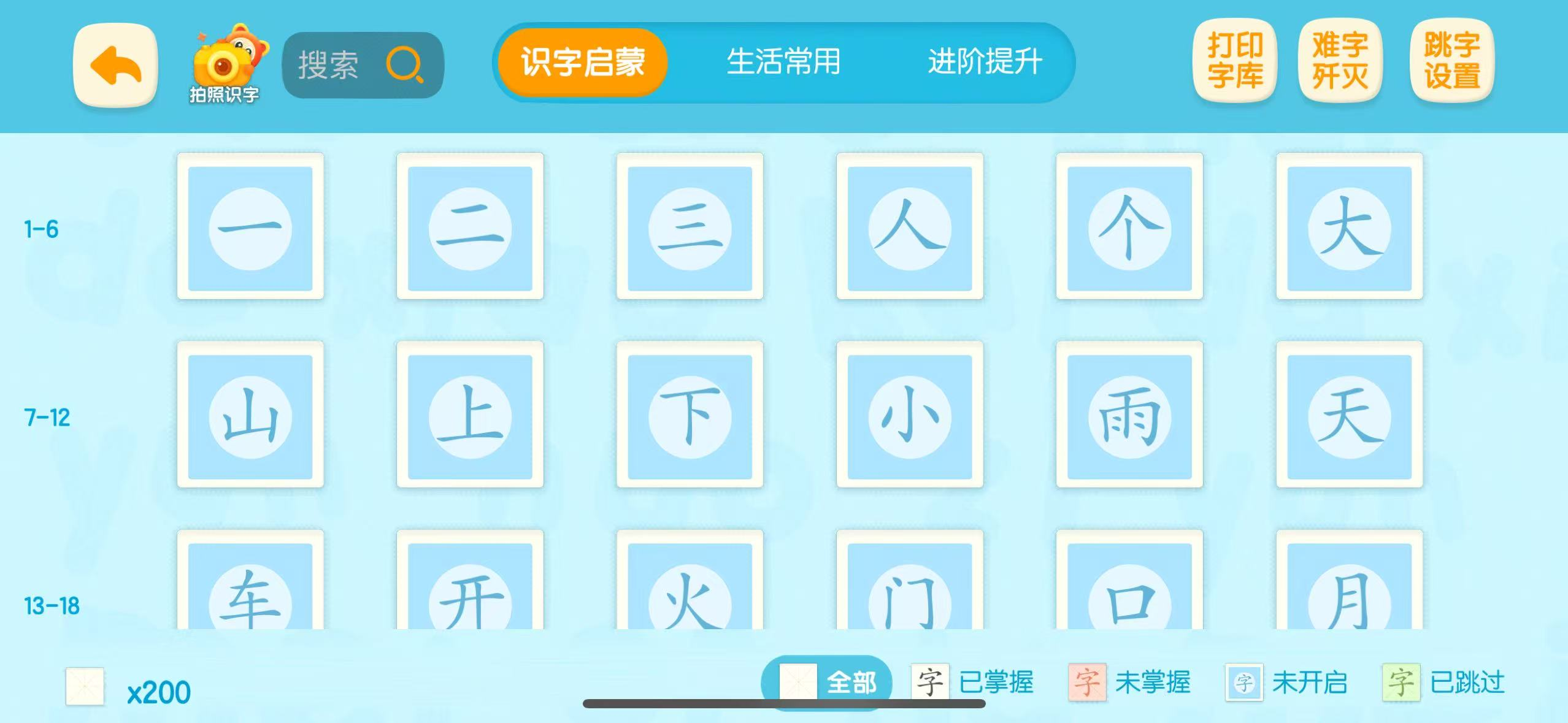 6、点击首页右下方字库可以切换首页的文字类型,并且会标注已学习、未学习的文字
