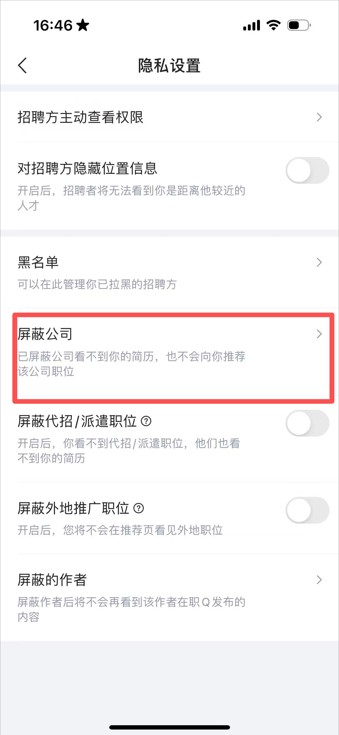 6、企业屏蔽:自选屏蔽企业,简历安全隐身