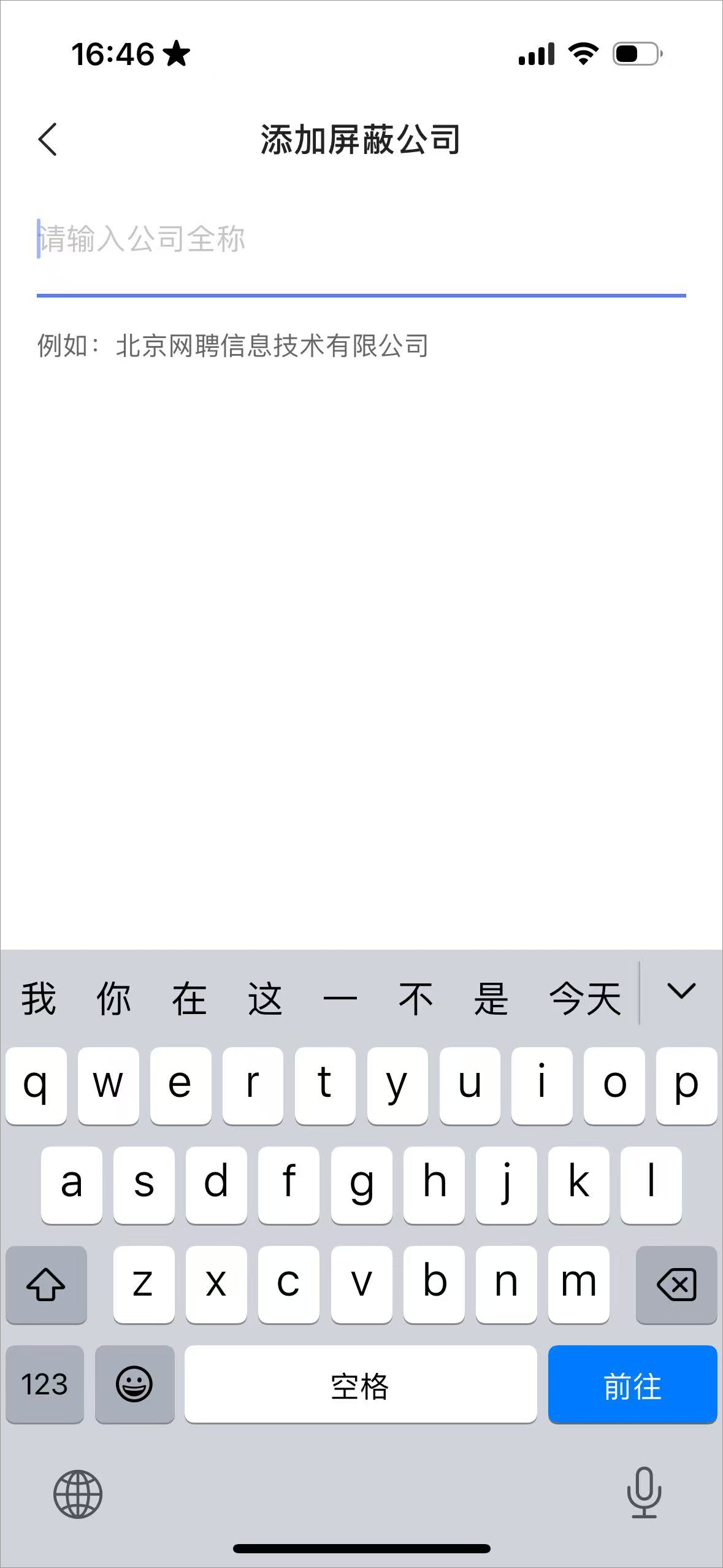 5、点击【去添加】按钮,输入需要屏蔽的公司全称