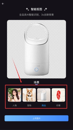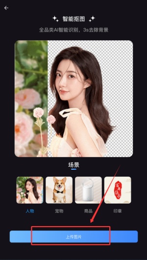 4、从设备中上传选定图片,系统将自动执行抠图处理。