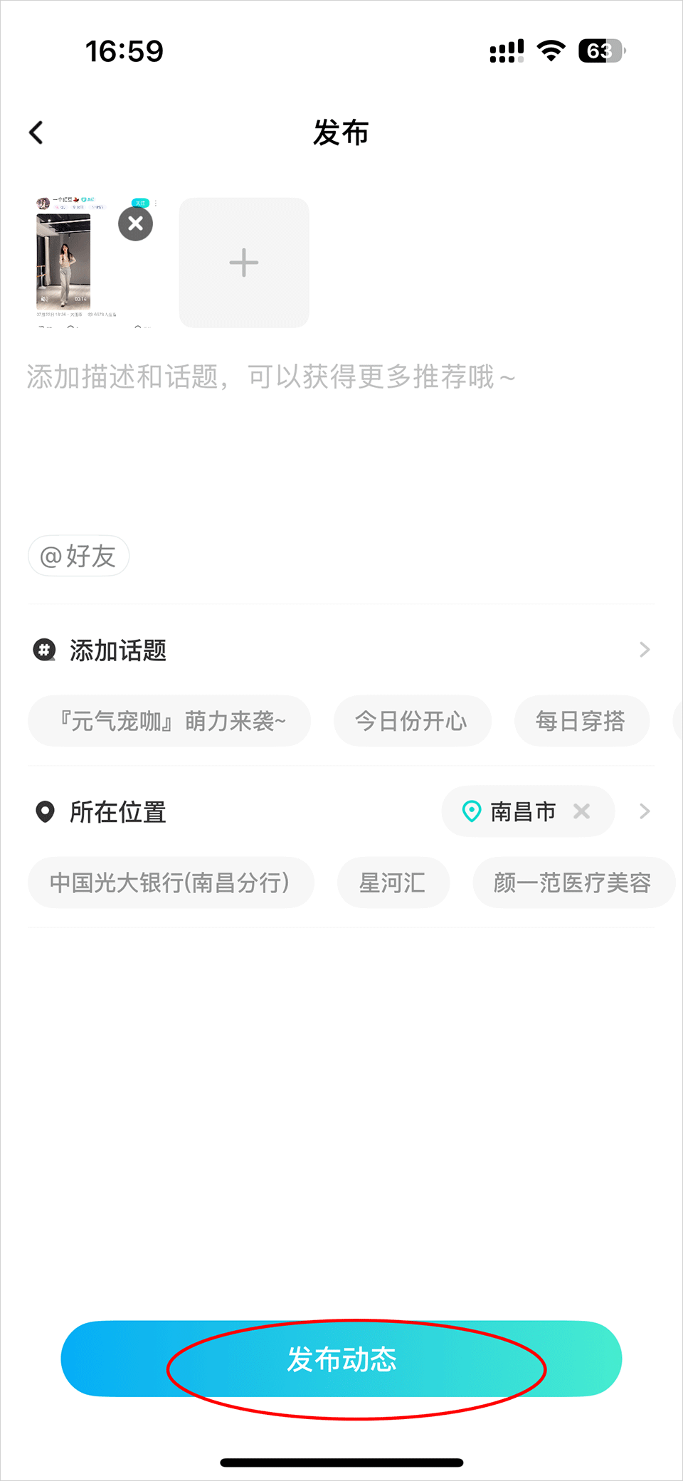 5、最后填写想要发布的动态文字描述,以及其它信息后点击【发布动态】按钮即可