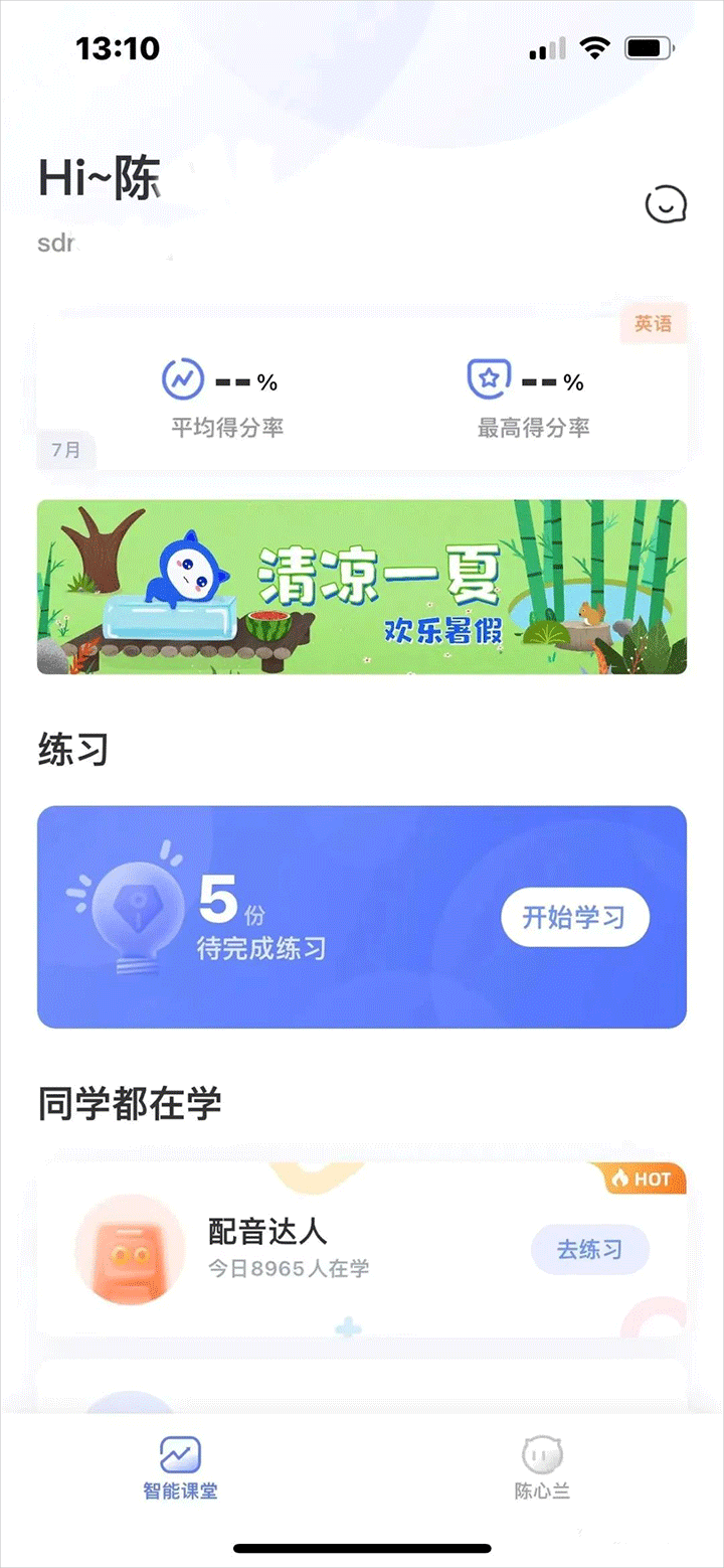 1、打开登录进入软件就能在首页智能课堂页面查看到待完成练习