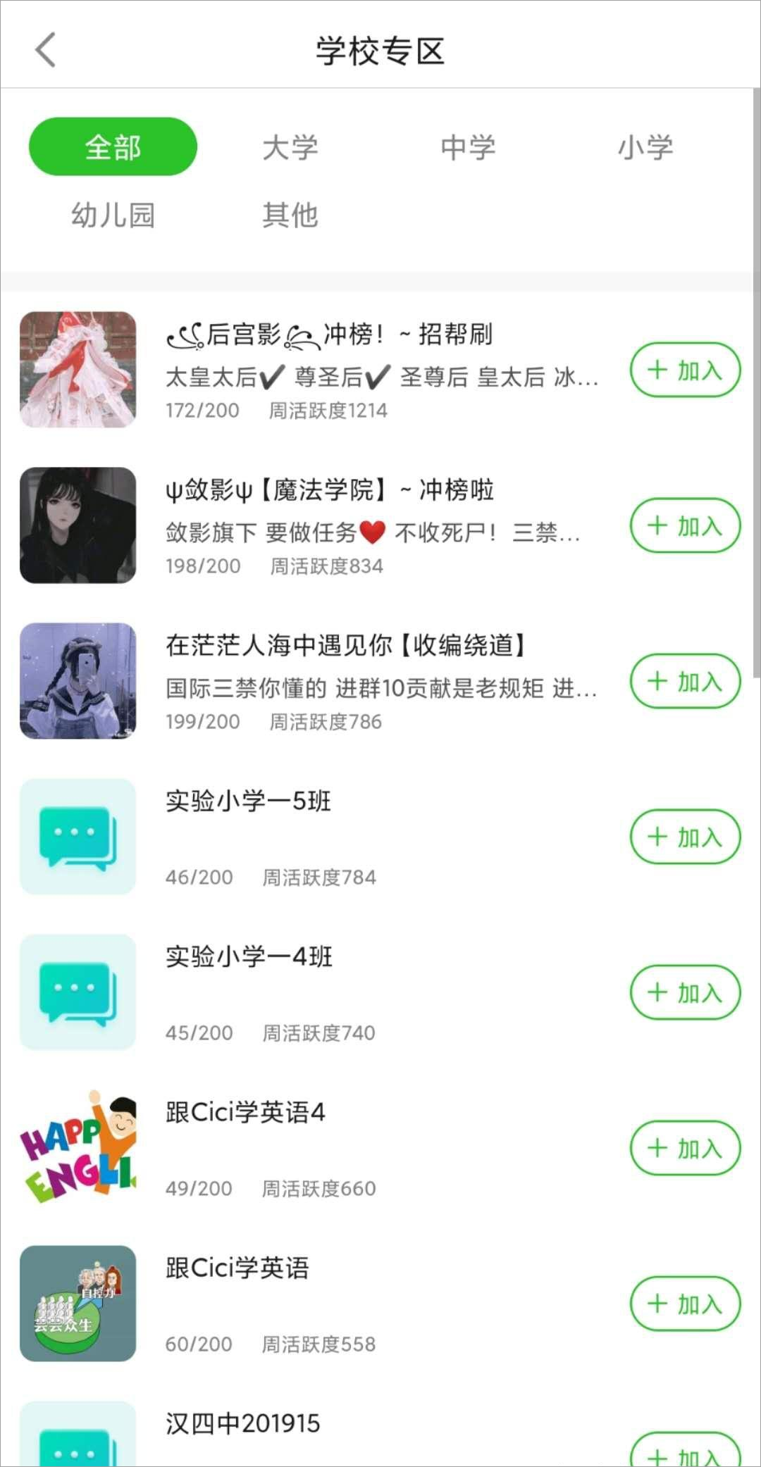 4、在【广场】-【圈子】中,用户可以选择加入兴趣小组进行组内交流讨论,小组成员每天都需要做任务。用户分享配音到小组,其他人则可以提出自己宝贵的意见。老师也可以在【学校专区】中建立班级专属小组,为学生布置、检查批改作业。