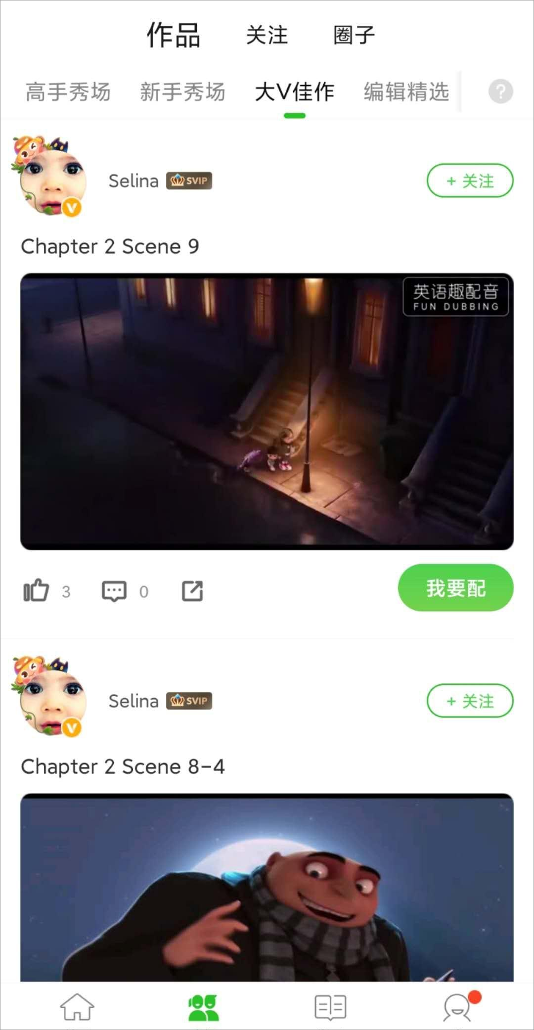 5、【高手秀场】、【大V佳作】的定位是为那些配音水平较高的用户提供的分享平台。随便点进一个作品在评论区都可以看到其他用户对作者的点评与鼓励,激励用户产生高质量的作品。
