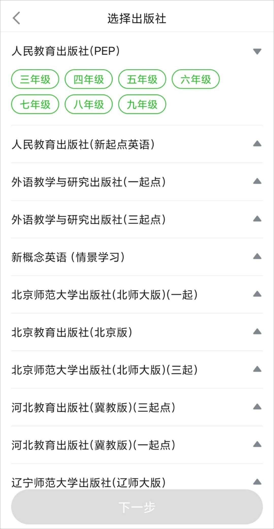 2、【精选教材】专区中,用户可以找到从小学到初中近30个版本的官方教材及配音素材。