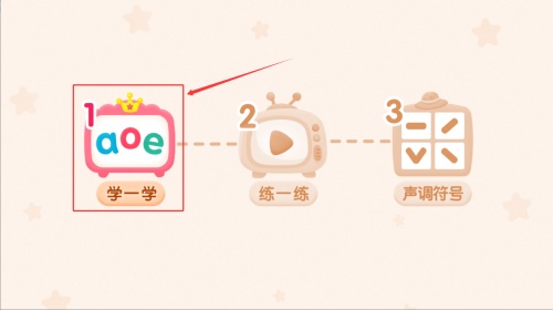 2. 进入课程后,系统会逐个展示本课拼音字母,点击屏幕可听到标准发音示范。