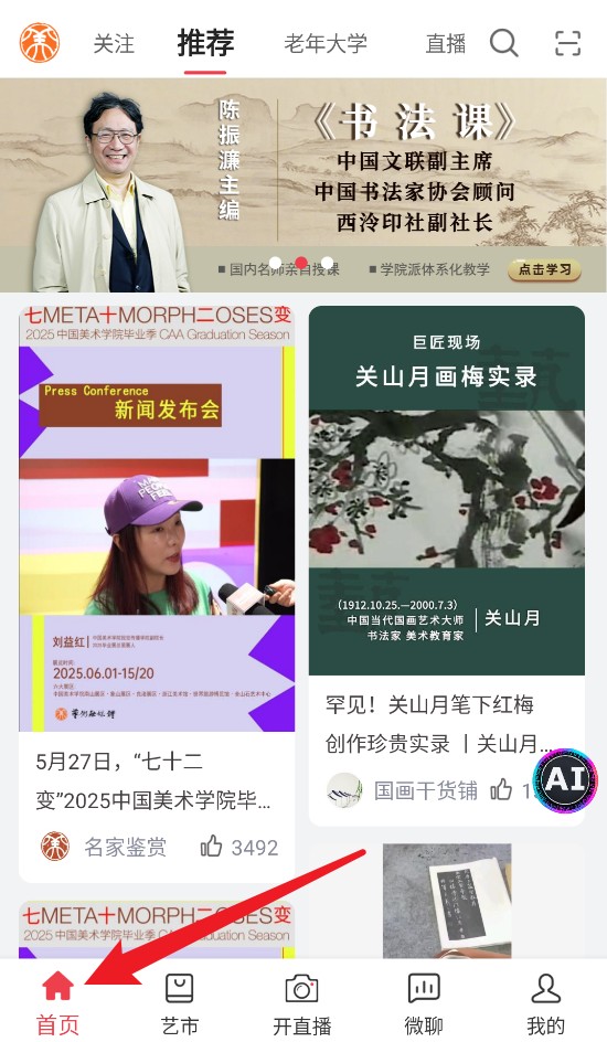 5、在“首页”可浏览推荐资讯、展览信息与艺术活动,获取丰富的内容与动态更新。