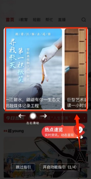 1、在首页左右滑动屏幕,可查看不同的资讯内容。