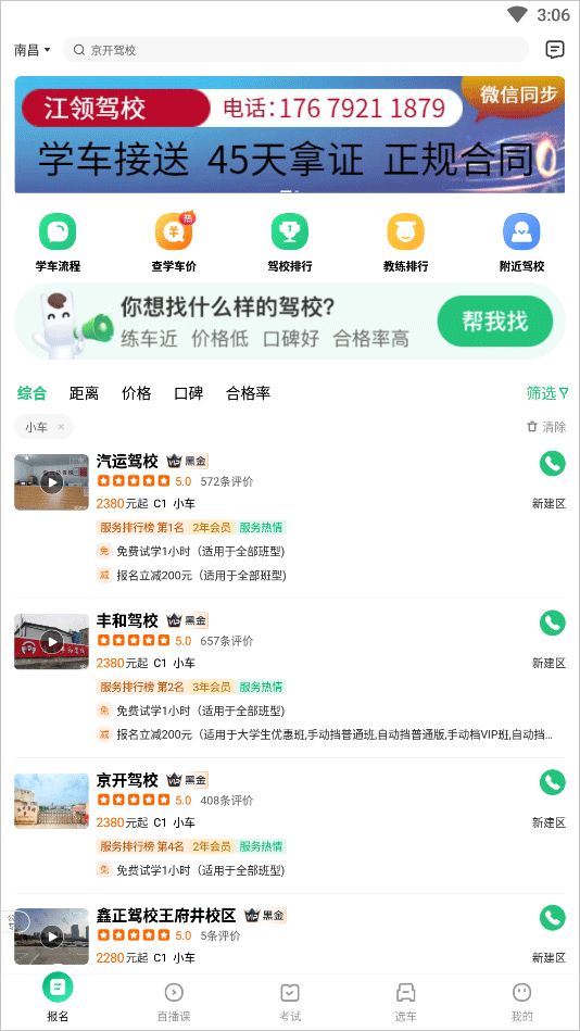 1、驾校报名