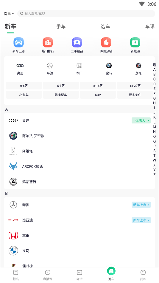 5、还有选车功能可以选择新手车或者二手车筛选价格和品牌,线上订购