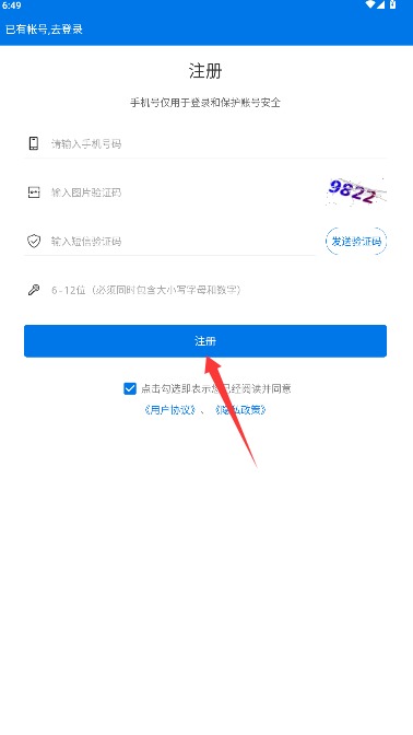 4、返回登录界面输入已注册的手机号与登录密码,验证通过后即可成功登录。