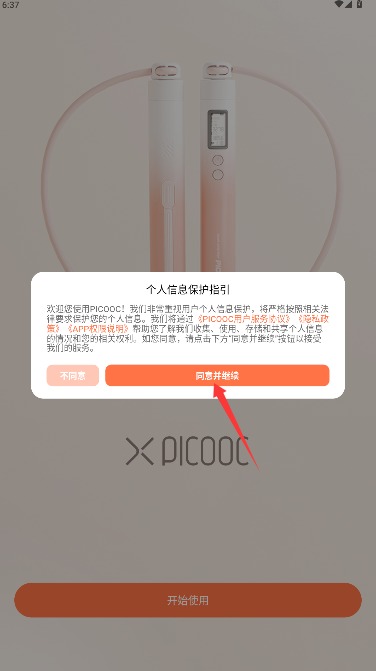 1、首次使用需阅读服务协议和隐私政策,确认无误后点击同意并继续进入。