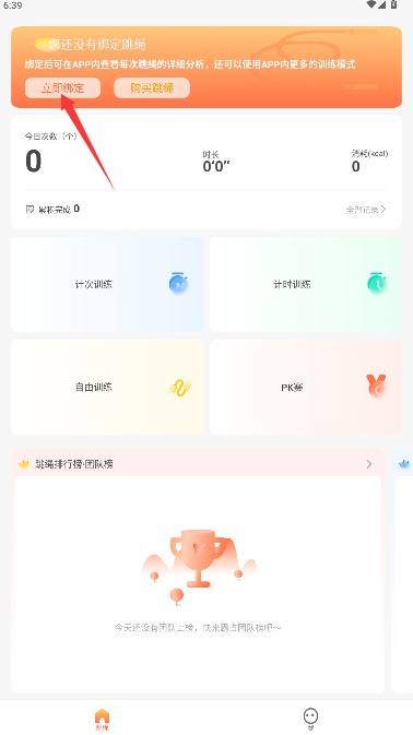 4、返回首页点击立即绑定按钮,根据系统指引完成跳绳设备的配对连接操作。