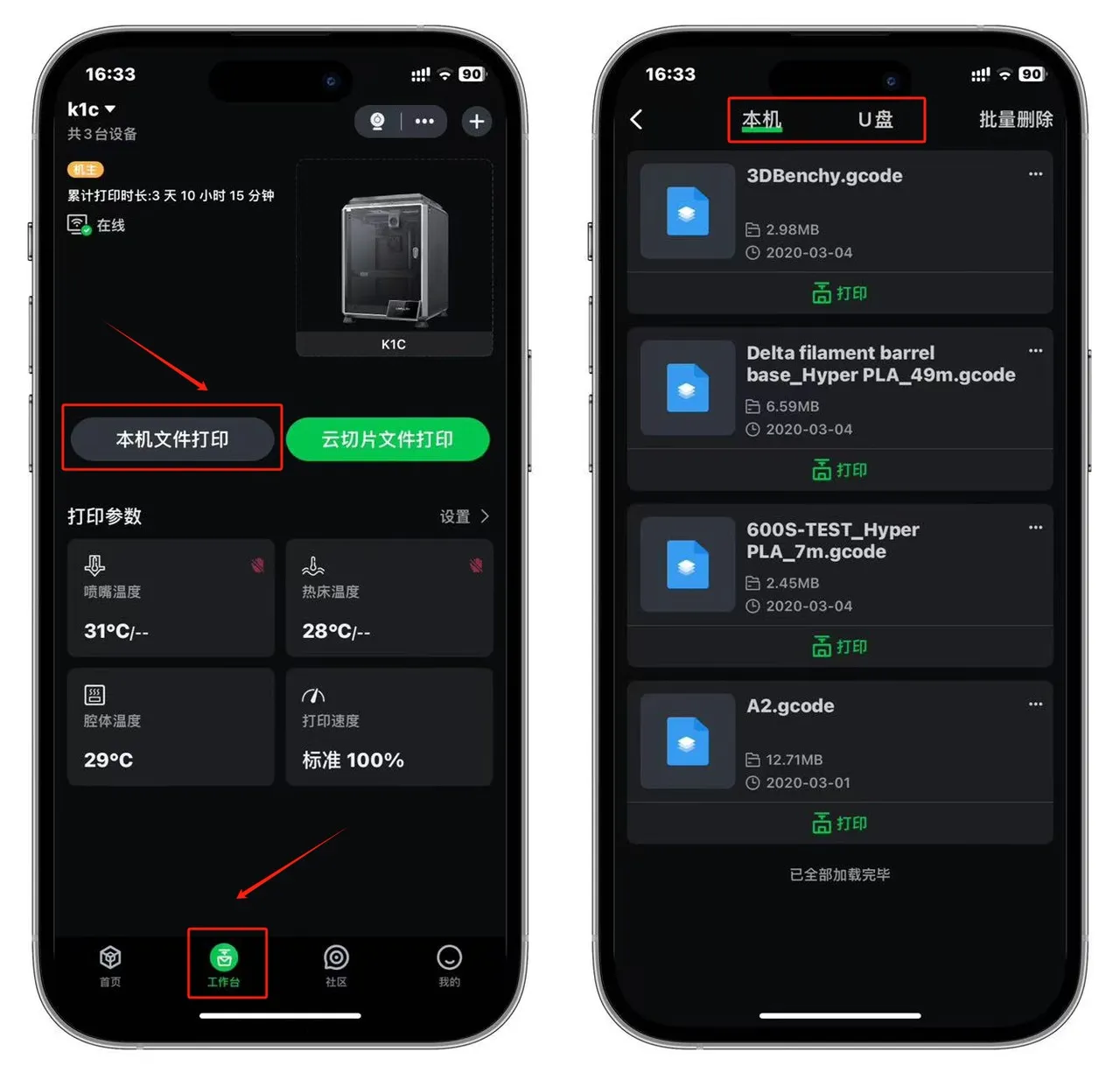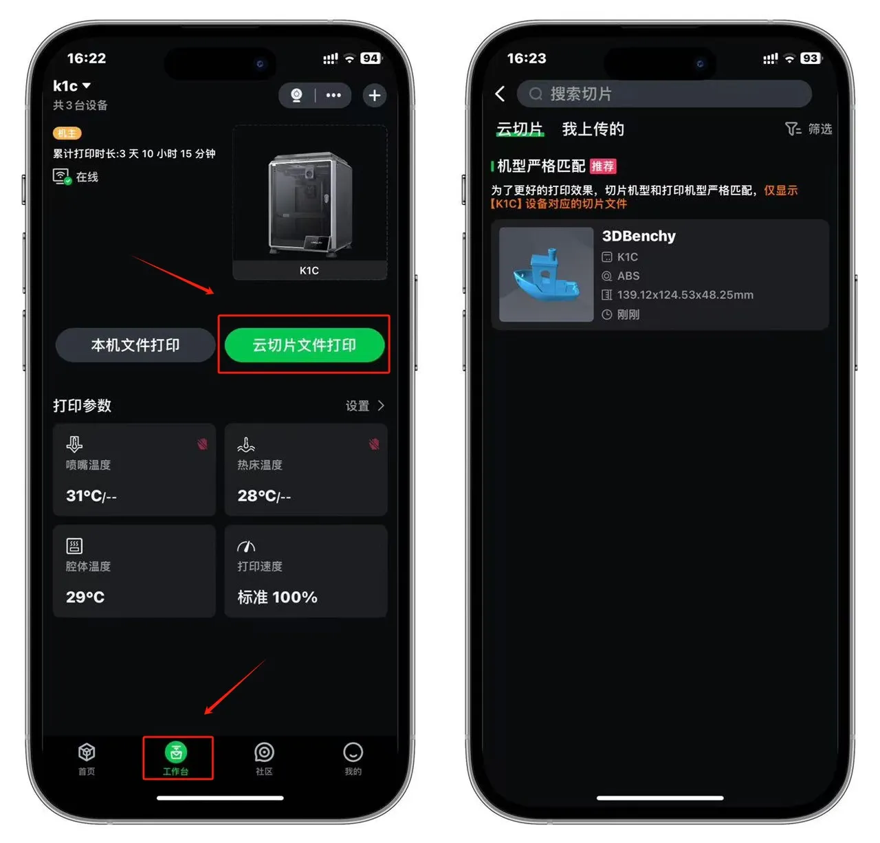 您还可以通过”工作台“-”云切片文件打印“路径下的打印文件发打印任务。