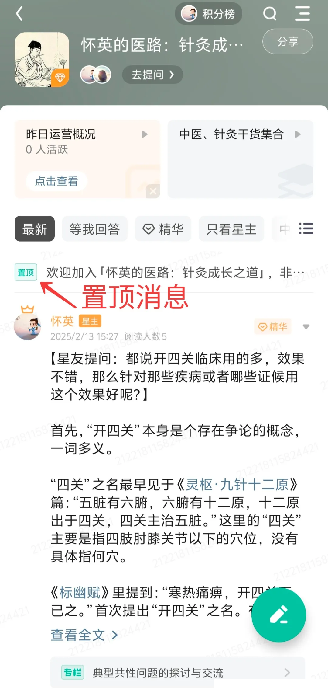 2、加入星期后置顶消息有每位星主对于星球的介绍及使用指南,一般也会有星主的联系方式。建议大家一定要看看置顶消息,有时候会有意外收获
