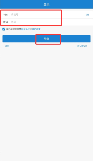 4、输入已注册的手机号码与对应密码信息,点击登录按钮完成账户验证。