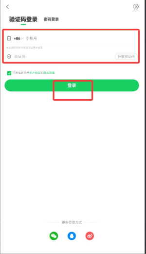 4、输入注册手机号码并获取短信验证码,填写后即可完成登录操作。