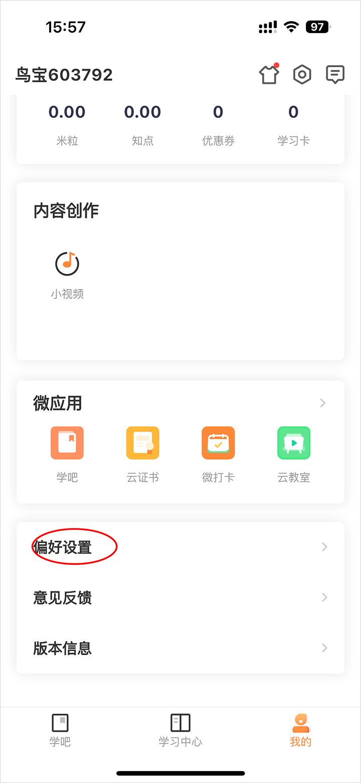 3、下滑选择点击偏好设置