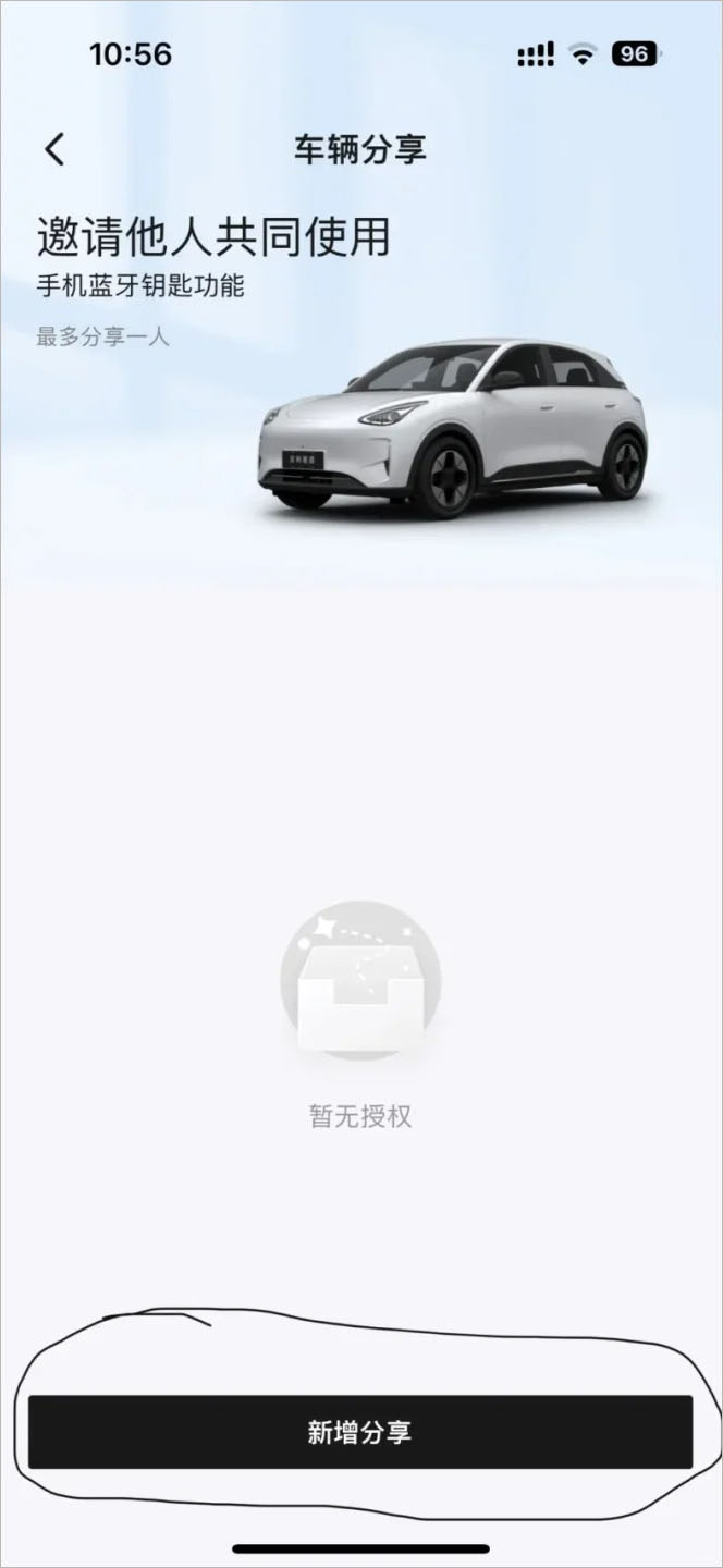 3、进入车辆分享页面点击新增分享