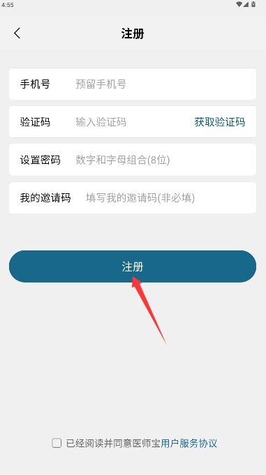 4、输入手机号获取验证码,设置登录密码并填写邀请码后即可完成注册。