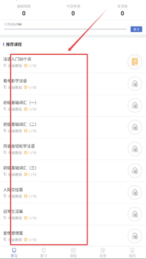 精选法语必备50词,进阶至法语初级基础词汇三部曲,更有看电影学法语等各类场景专题课程。从词,句,对话学习,循序渐进,轻松学法语,媲美沪江开心词场!
