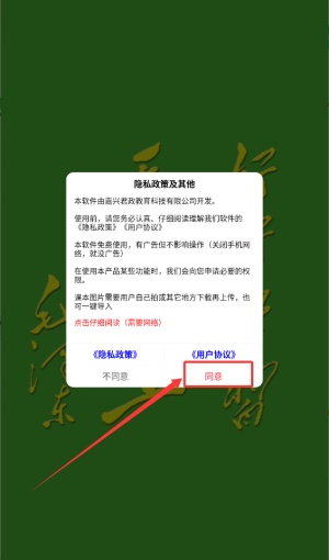 1、首次启动时,请仔细阅读并勾选同意用户协议,随后即可进入应用。