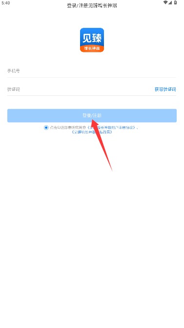 2、在登录页面输入手机号码及接收到的短信验证码,系统将同步完成注册与登录。