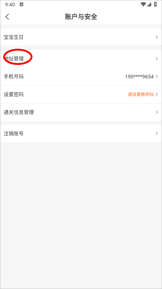 4、进入账号与安全界面点击地址管理