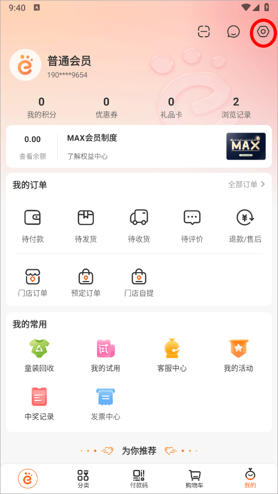 2、进入我的界面点击右上角的设置图标