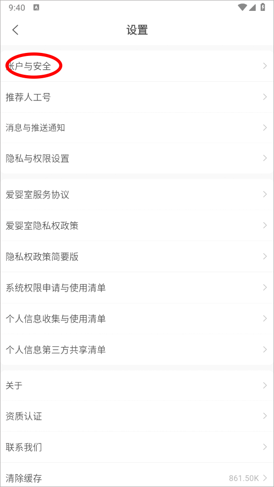 3、点击账号与安全