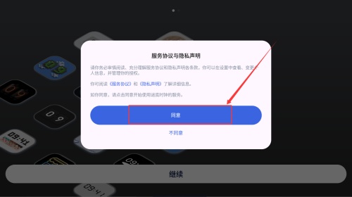 1、首次启动时,请阅读并勾选同意下方的服务协议,随后进入应用。