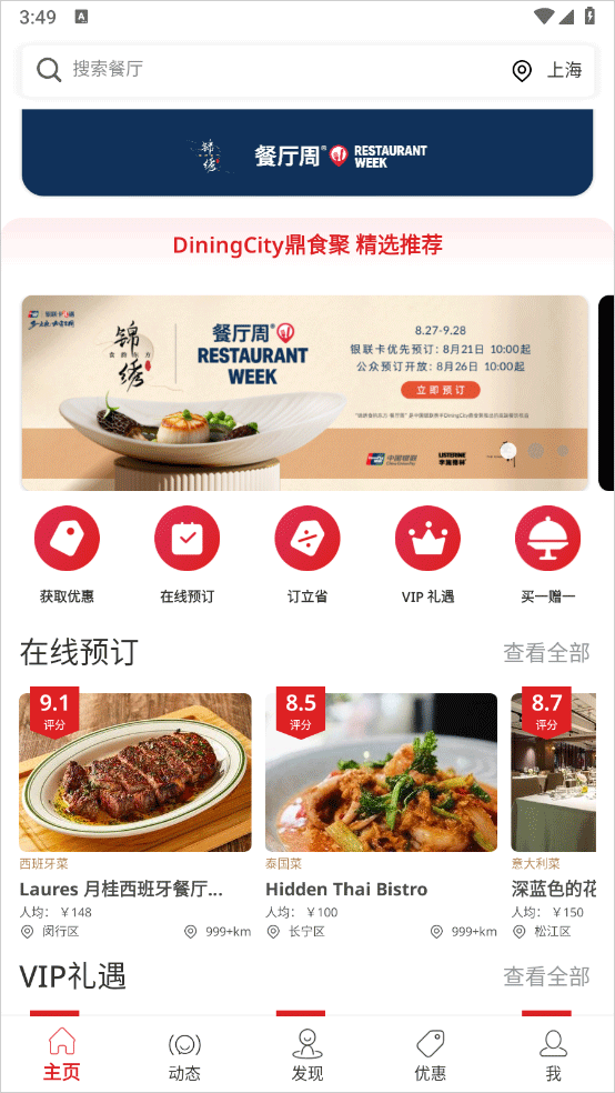 可在餐厅周活动期间进行优先预订,及时订到最热门火爆的餐厅最佳位置;