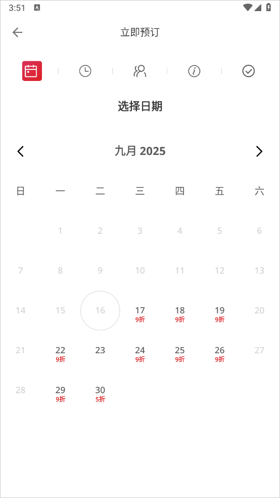 4、选择你要预订的日期、时间、人数等即可