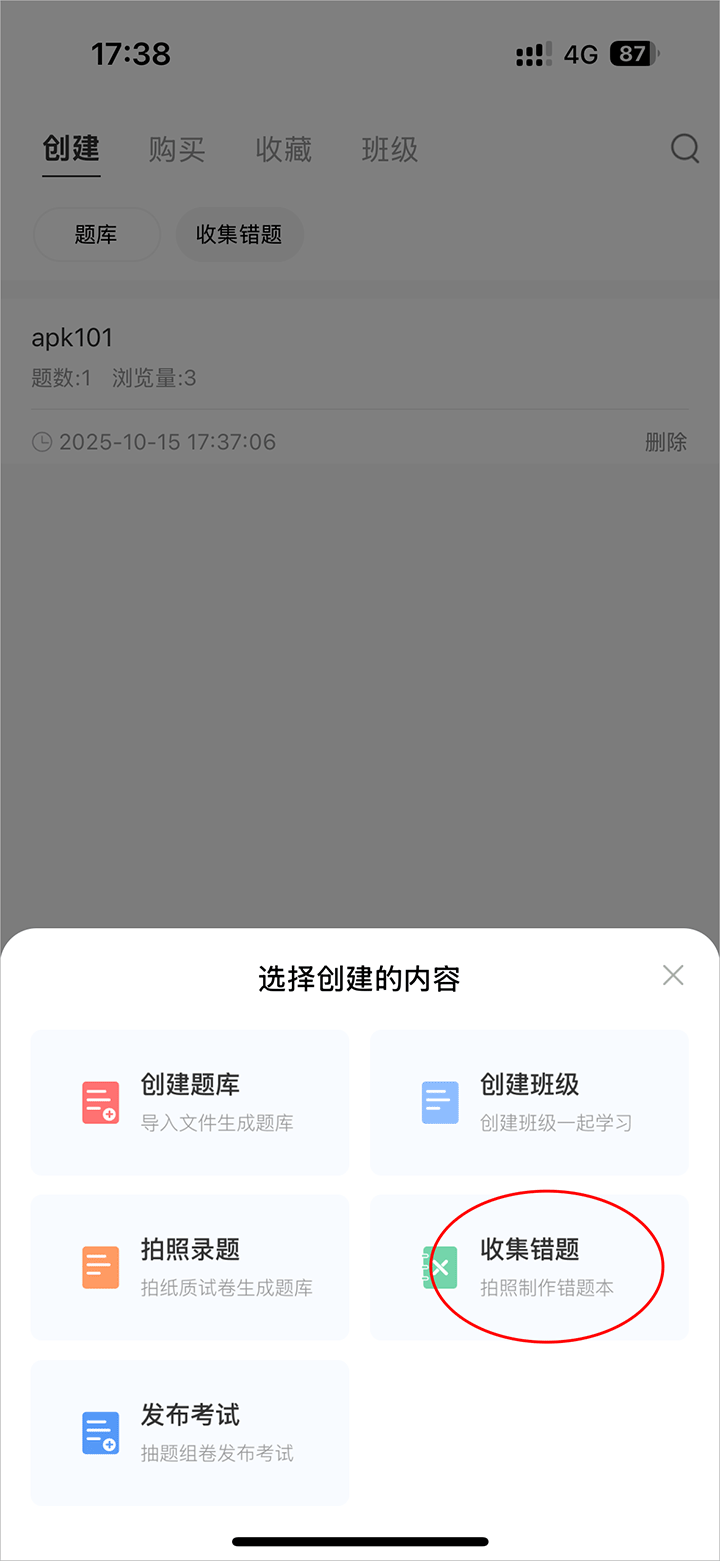 3、弹出小窗口点击收集错题