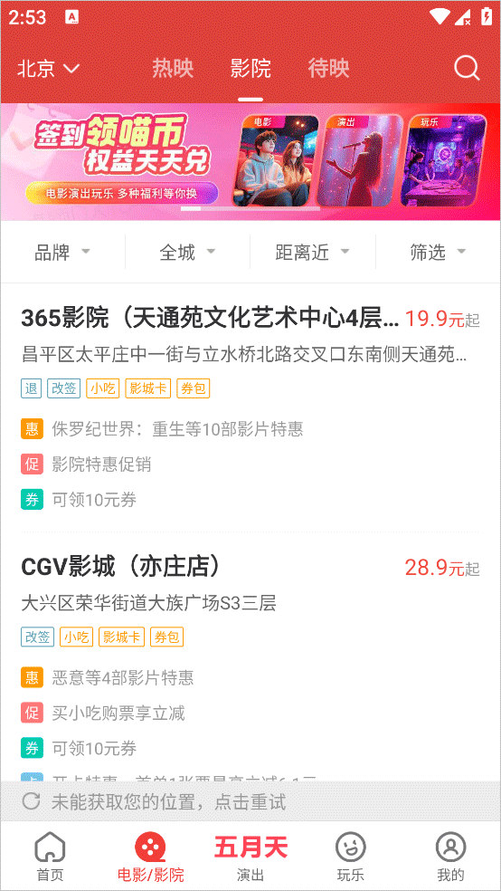 2600家影院排期实时查询,随时随地定位附近影院,只为让你更好地安排行程