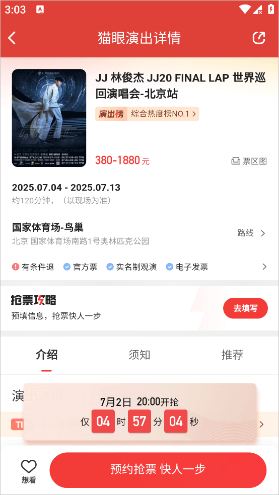 5、在猫眼抢票要点击点击预约,临近售票时间会有短信通知,以免大家错过开票时间