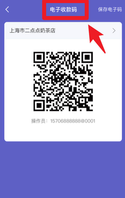 2、在电子收款码页面可生成并展示专属二维码,顾客扫码即可完成支付,商户可直接保存二维码以便长期使用。