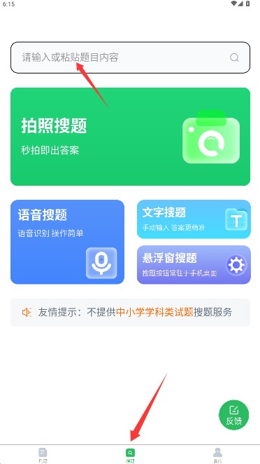 4、进入搜题页面可通过文字输入或拍照上传题目两种方式,快速获取答案解析。
