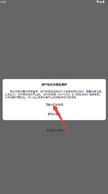 1、打开应用后仔细阅读用户协议和隐私政策,确认后点击同意并开始使用进入。