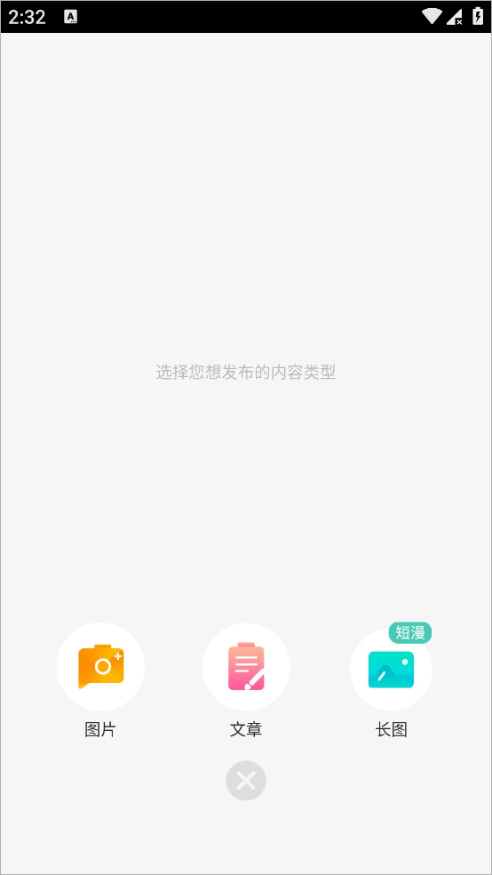 2、可以选择发布图片和文章,还可以发布漫画长图