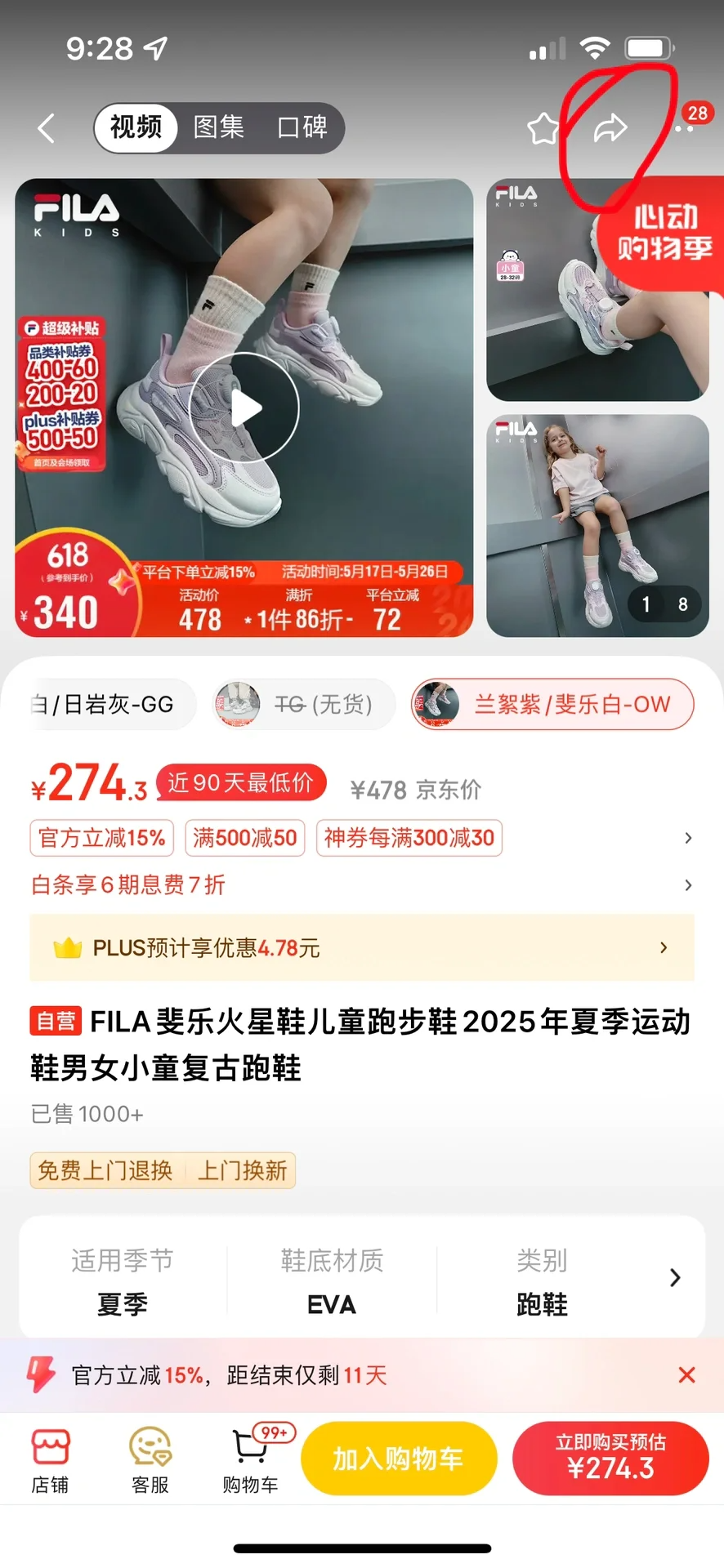 1、首先我们需要在京东app中选择一件想要推广的商品,在商品详情页面右上角的分享图标