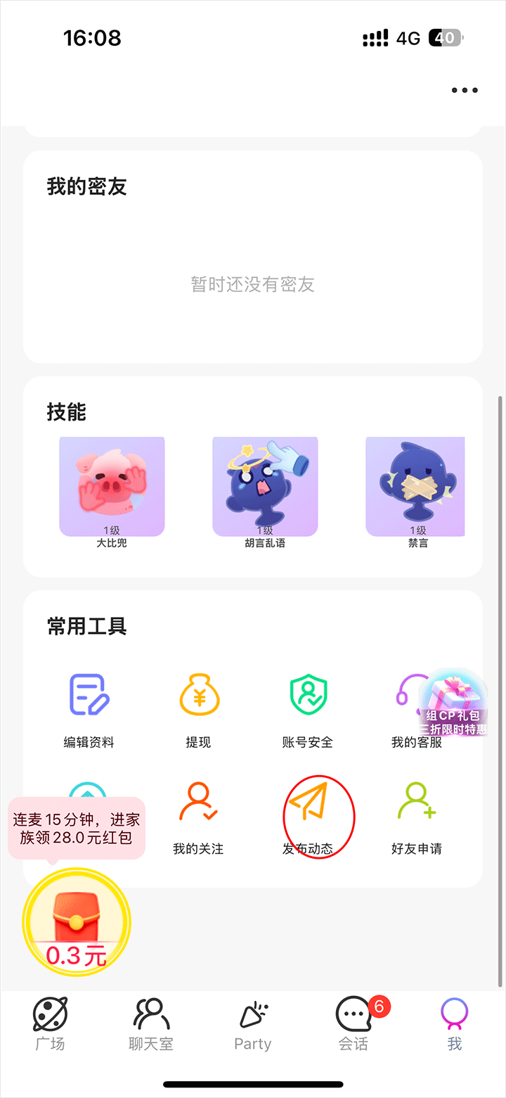 派对大厅寻搭子,可以陪你吃饭、看电影、语音聊天、游戏开黑等,让生活不再孤单;
